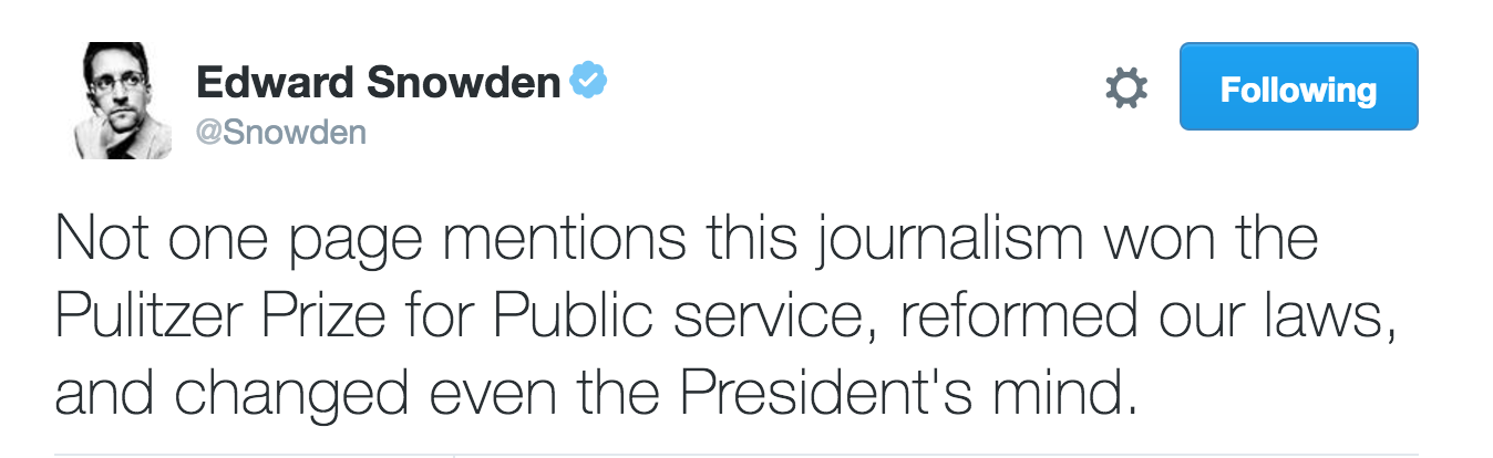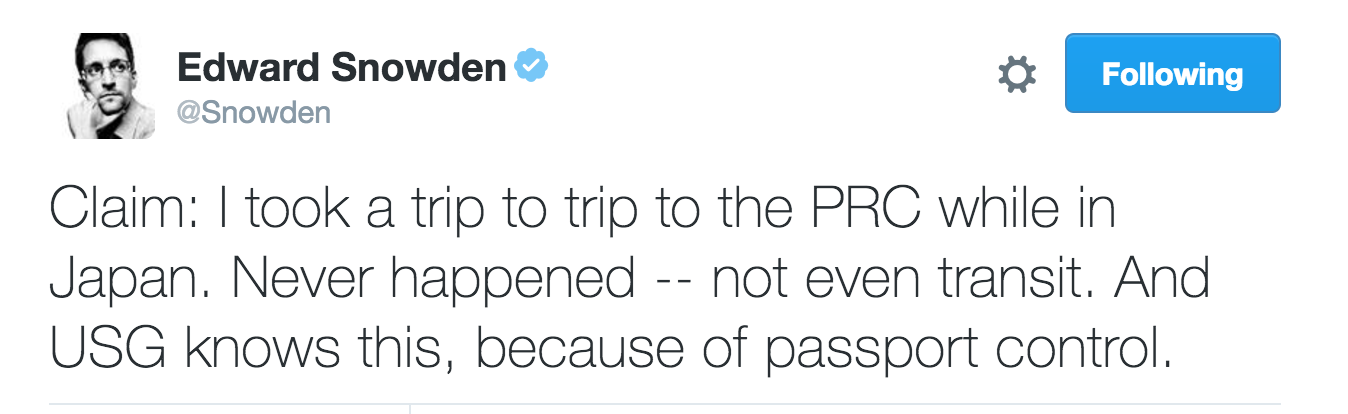It also states the false and absurd charge that Snowden has cooperated with Russian and Chinese intelligence agencies. Not only does this ignore the fact that Chris Inglis, the former deputy directory of the NSA, has said otherwise; it also fails to make even passing mention of Snowden's mounting criticisms of Russia's surveillance and censorship practices. And that's to say nothing of the many other demonstrably false claims regarding Snowden's education history, medical records, and travel patterns.