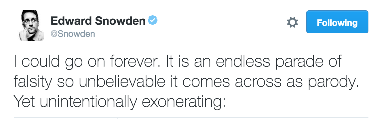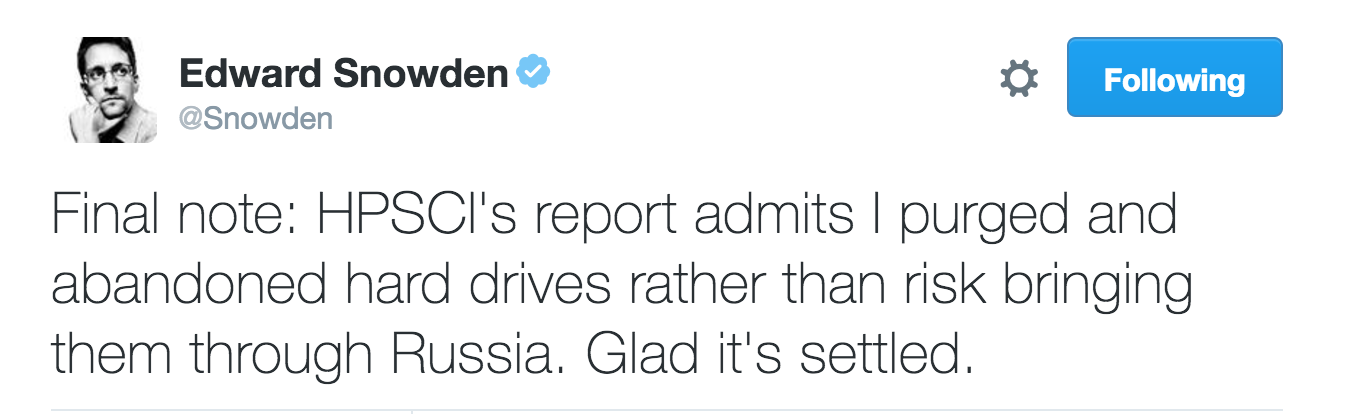 Snowden took to Twitter to respond to many of the report's points. You can read his point-by-point dismantling of the report’s falsehoods here. Some highlights:
